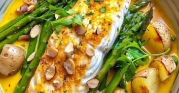 Substitute any firm fish, and consider peas or spinach, instead of asparagus.lngredients ~1/2 teaspoon saffron threads2 tablespoons lightly toasted almonds2…