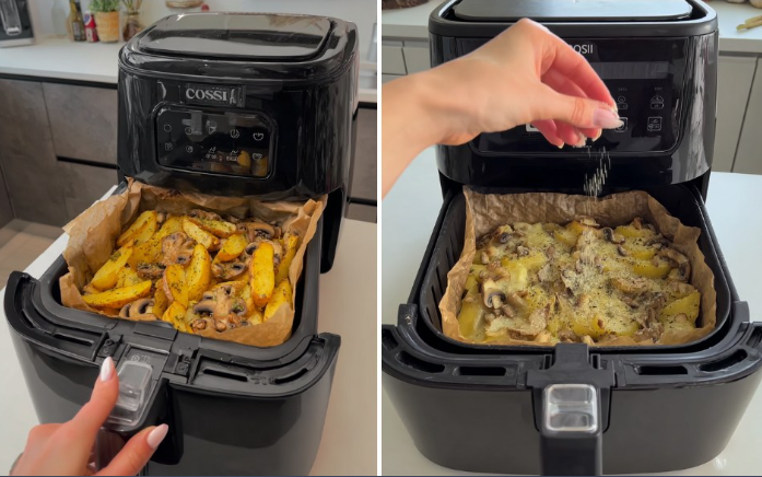 Ces pommes de terre à l’ail et champignons à la friteuse à air avec fromage fondu sont la preuve qu’un plat simple peut être absolument irrésistible.